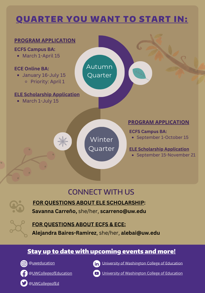 To learn more, current and prospective UW students interested in the scholarship are welcome to meet with Savanna Carreño, Early Learning Scholarship Community Liaison: